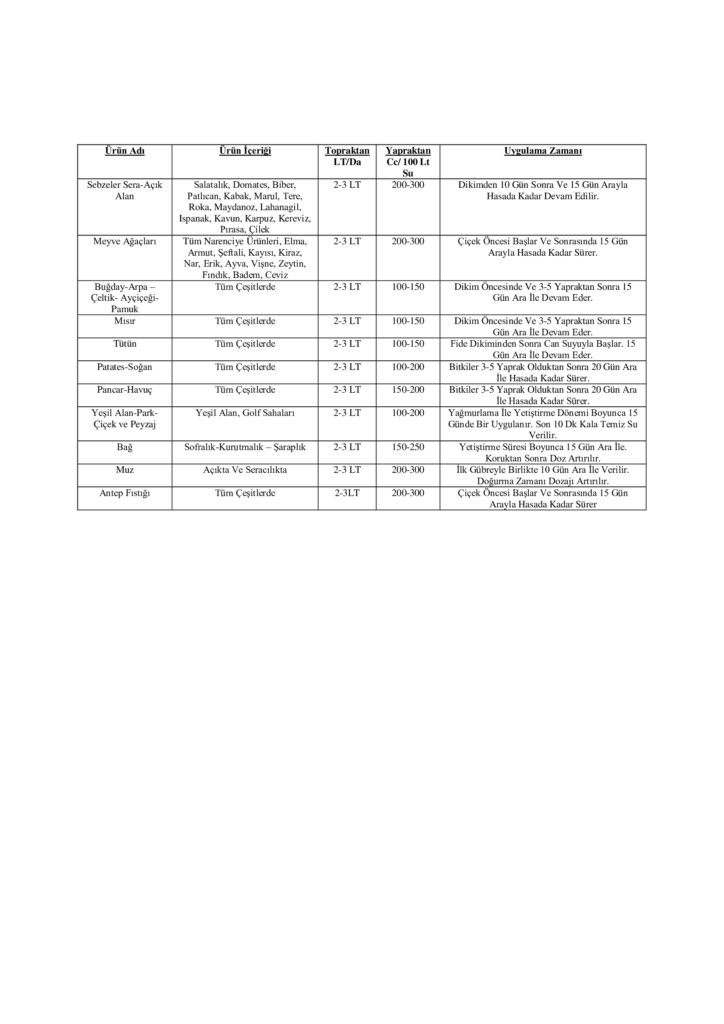 ÜRÜNÜN SINIFI: BİTKİSEL MENŞEİLİ SIVI ORGANİK GÜBRE